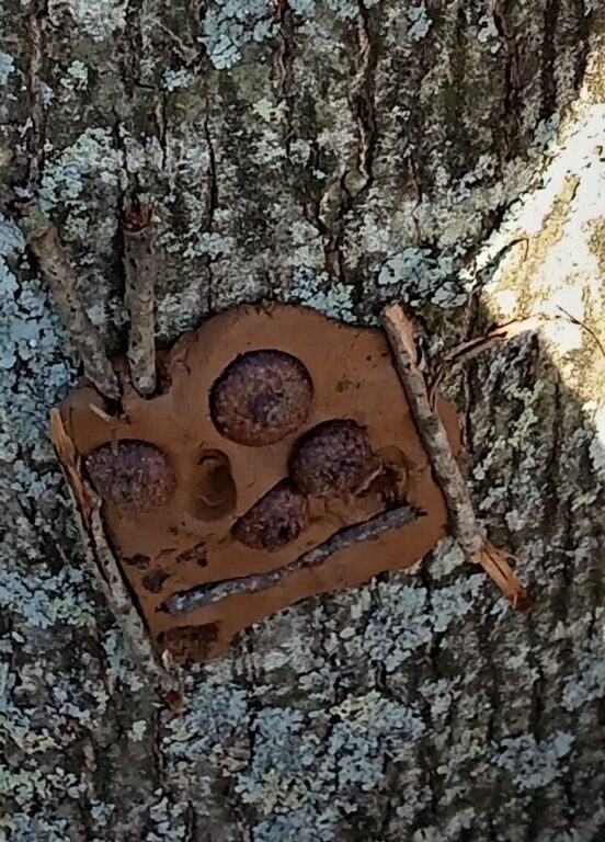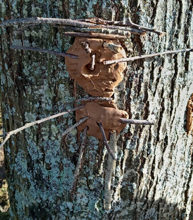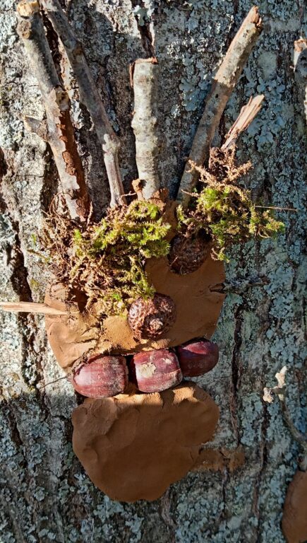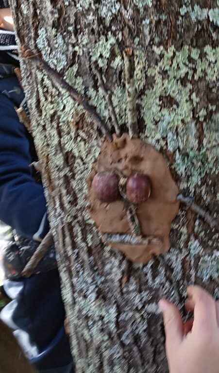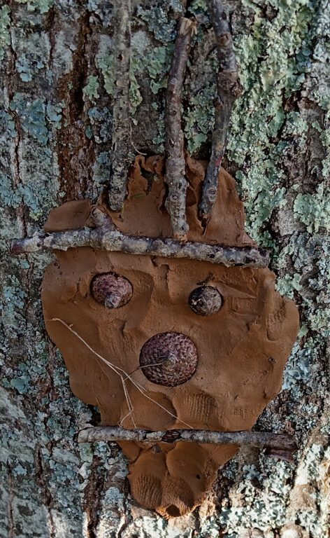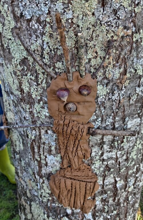 Les TPS,PS,MS ont représenté de jolis bonhommes en argile sur les tronc des arbres du parc de la MARPA. Ils ont utilisé les objets de la nature.