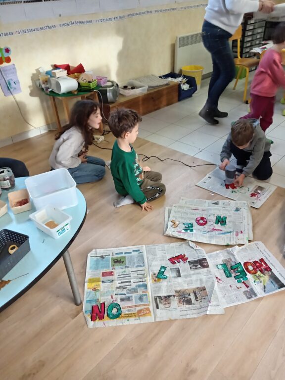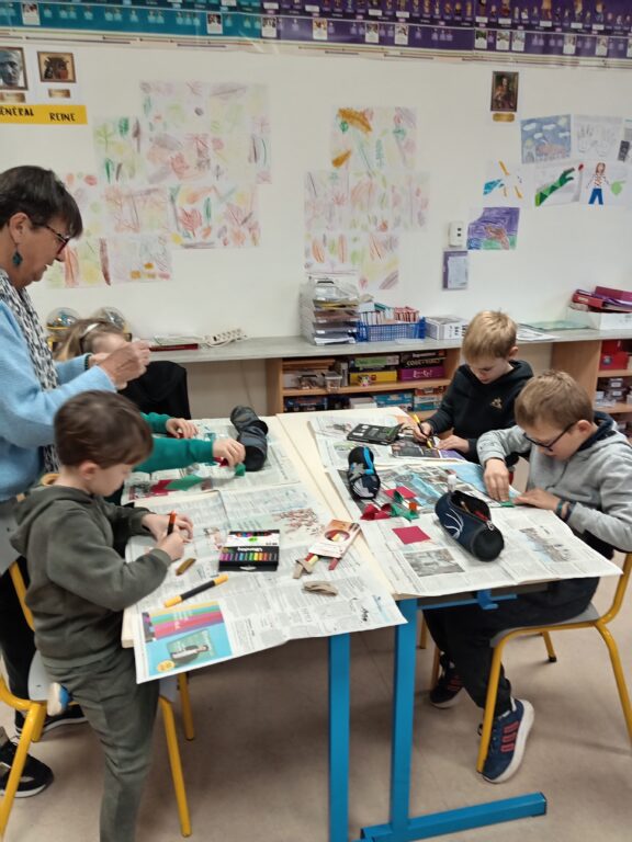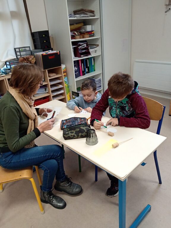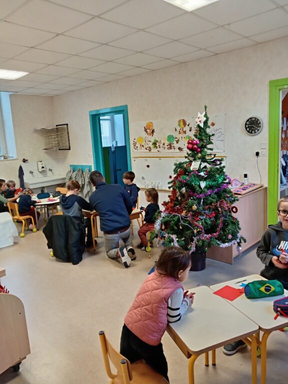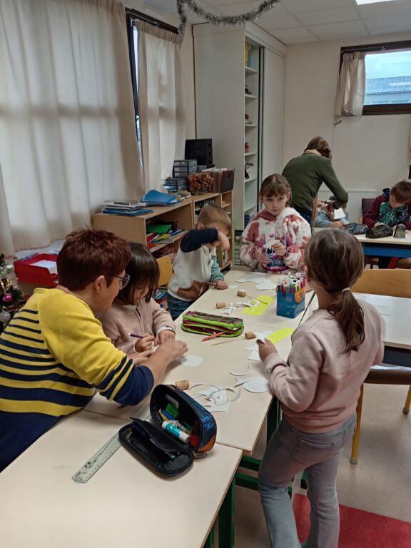 Noël approche…, mardi 2 décembre, toutes les classes étaient mélangées pour faire des bricolage de Noël afin de