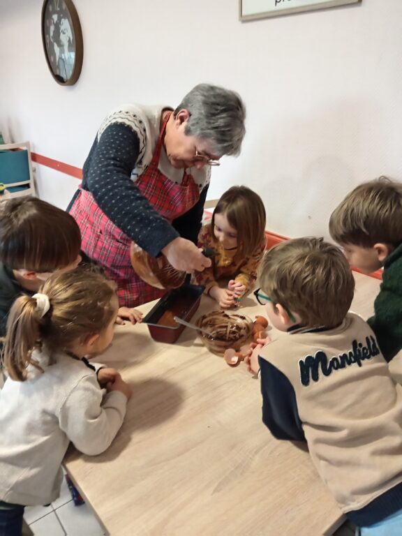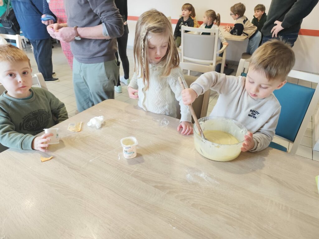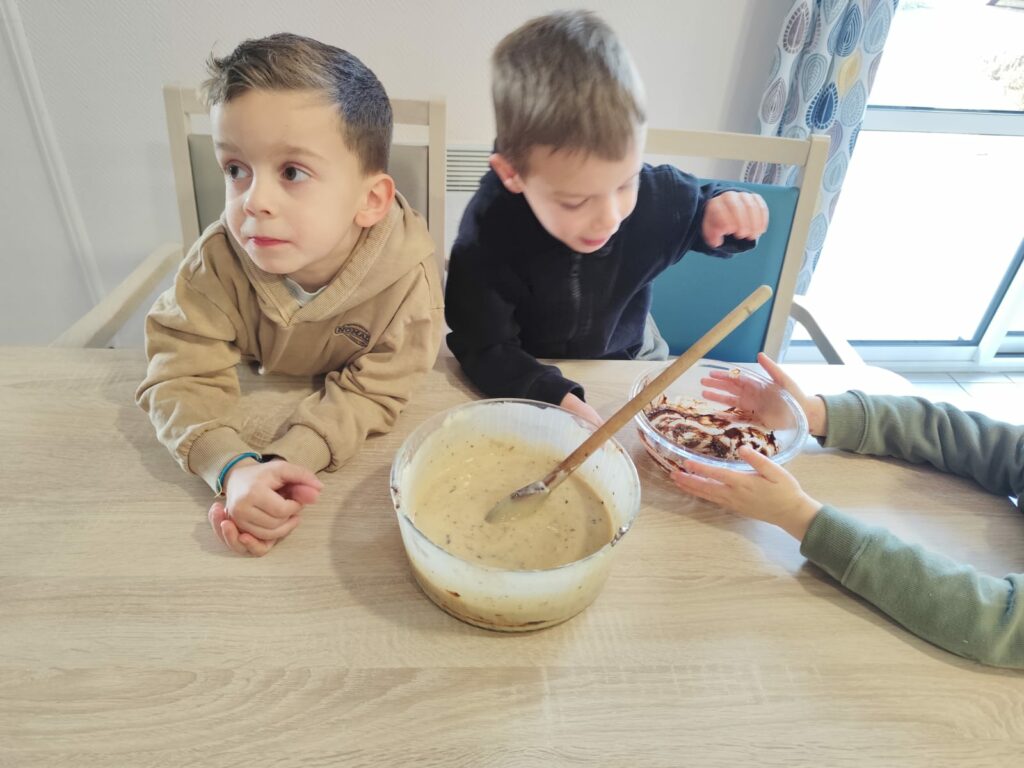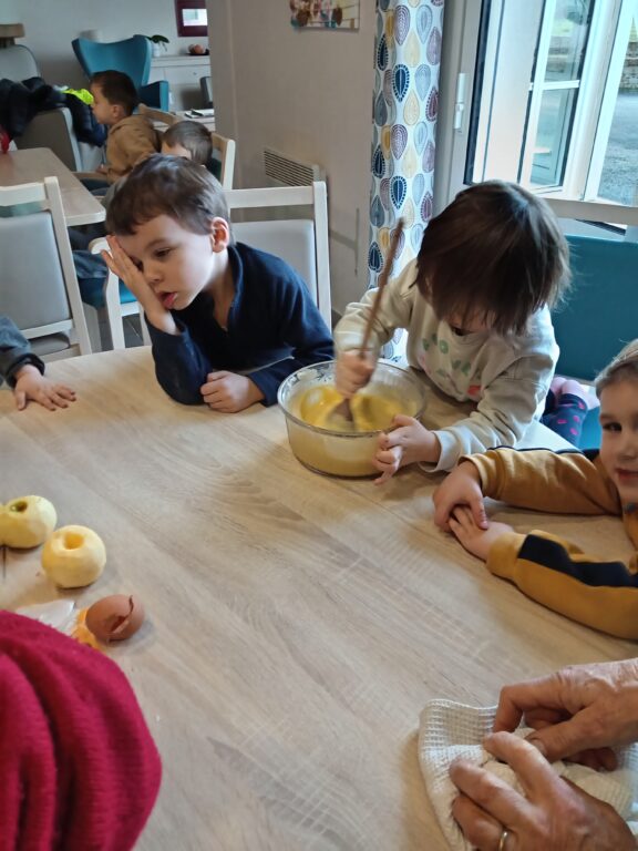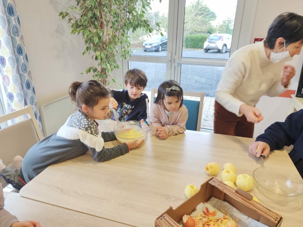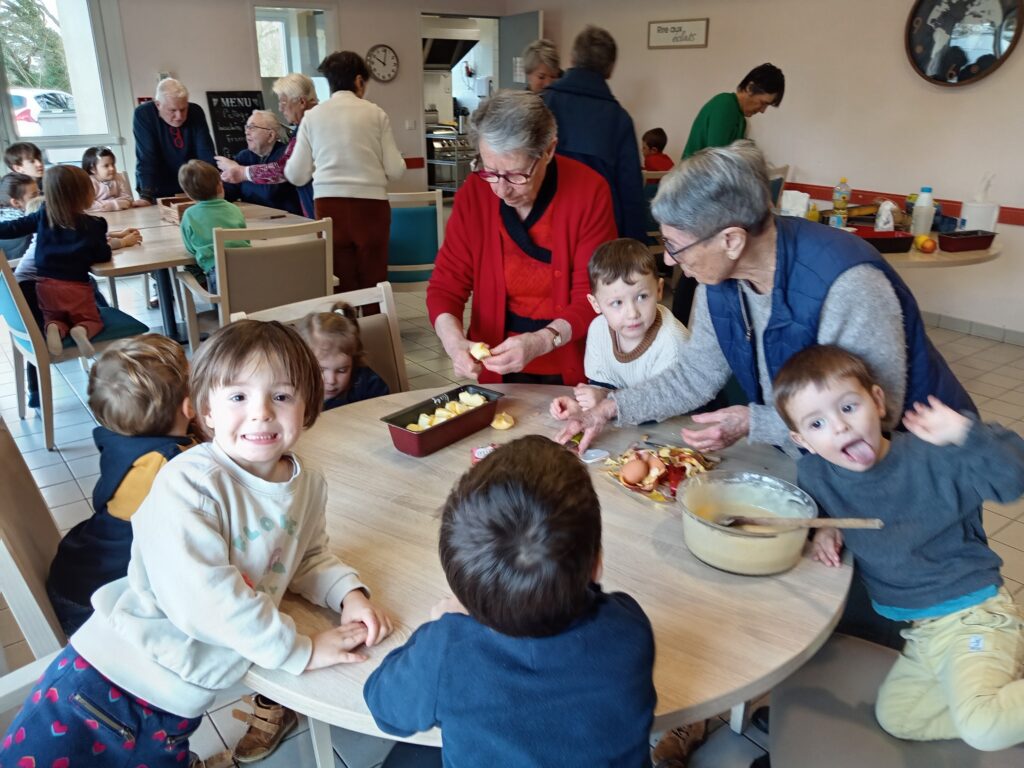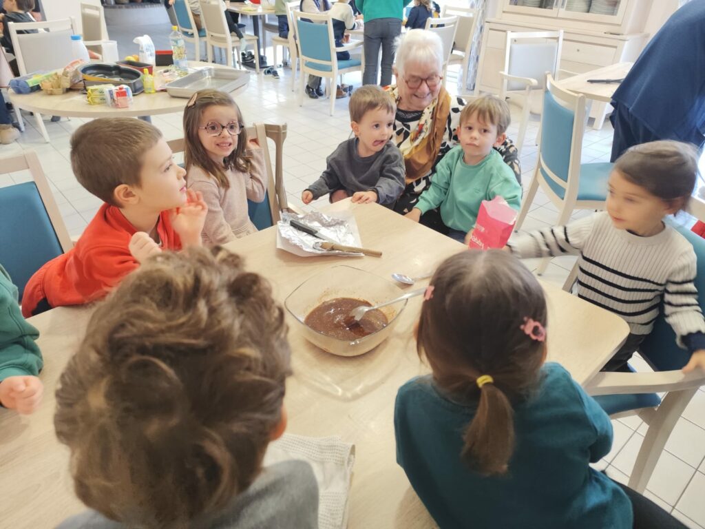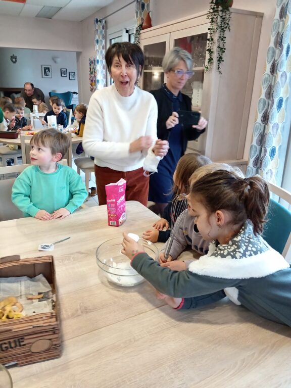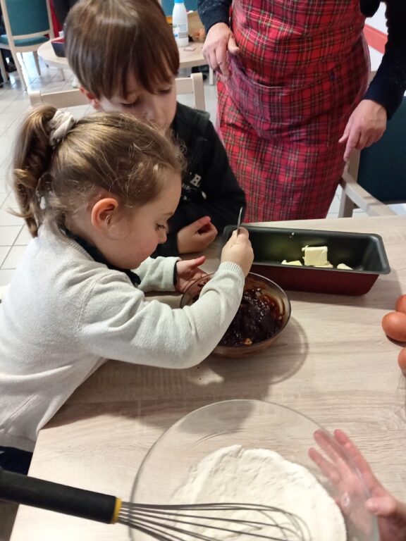 Jeudi 15 janvier, les PS, MS et GS sont allés à la MARPA pour faire des gâteaux au chocolat et des gâteaux aux pommes avec des résidents. Ce temps d’échange est à l’initiative du secours catholique qui fournit les ingrédients.